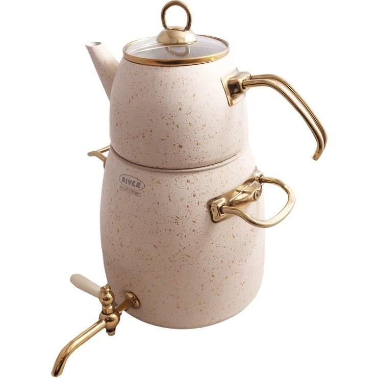 کتری قوری شیردار استیل کمر باریک طلایی نقره ای ریور مدل 2150
