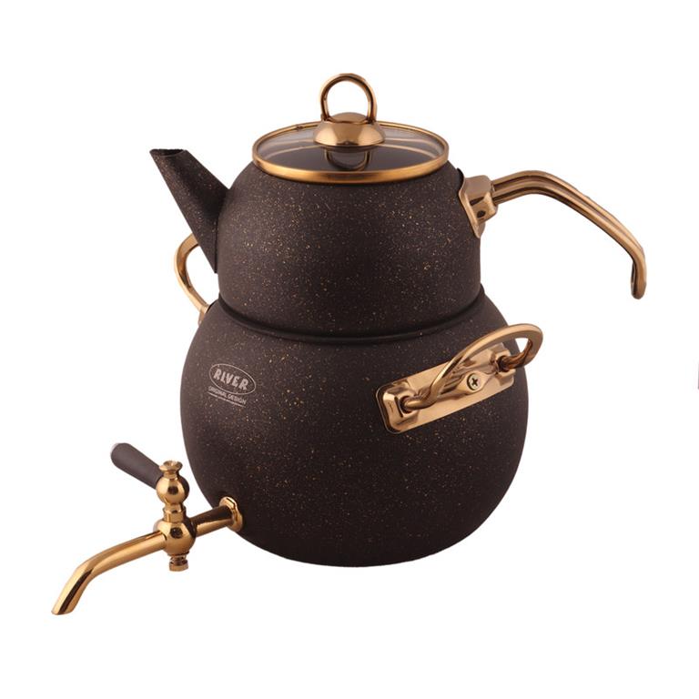 کتری قوری ترک سبز دسته طلایی 5880 ریور