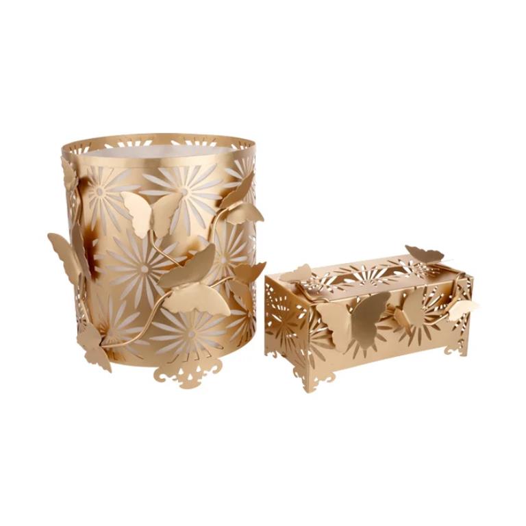 ست سطل و جا دستمال کاغذی طرح گرد پروانه طلایی ریور 4092