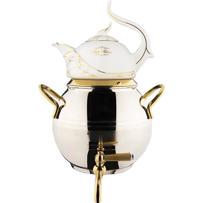کتری قوری استیل طلایی کروپ ست مدل کیانا 606